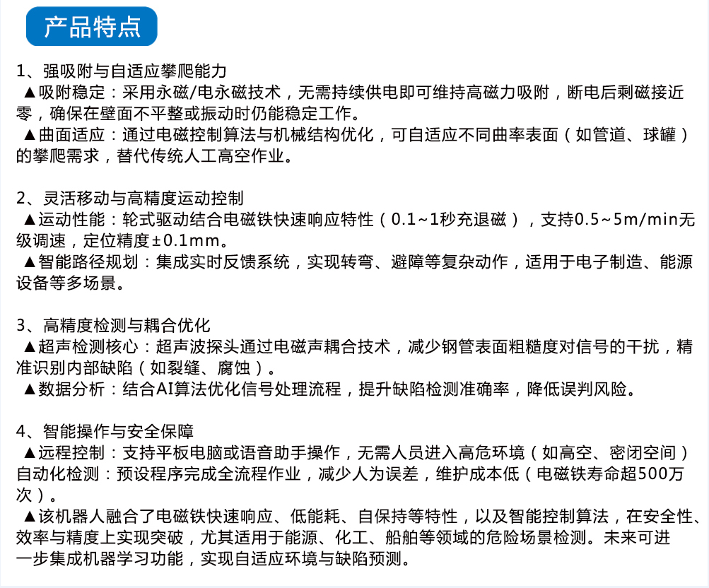 爬壁機器人移動的同時,超聲波探頭進行檢測、采集數據,經處理后生成圖像,*進行缺陷識別與診斷。
