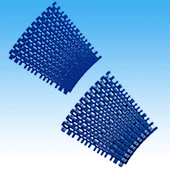 S形弧狀等,可進(jìn)行多種圓弧形設(shè)置。 新追加了塑料模塊鏈條曲線搬運(yùn)用途產(chǎn)品。