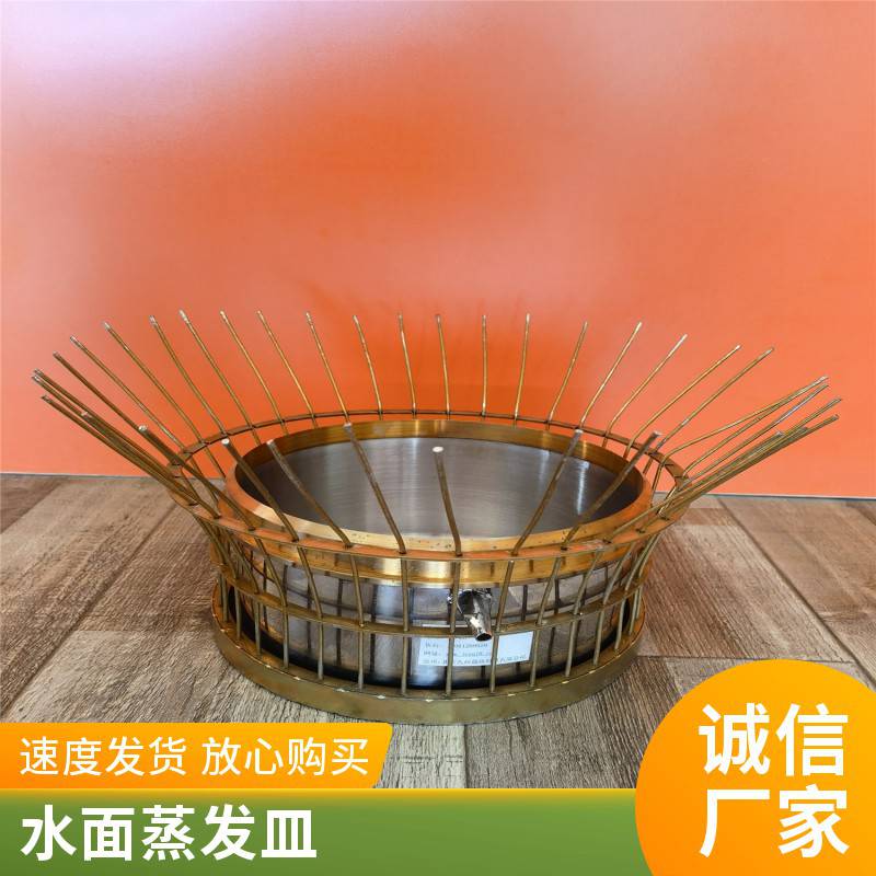 水面蒸發皿   蒸發器面積:314cm2      刃口面內徑:φ200 0.6mm 九州晟欣是口徑為20厘米,高10厘米的金屬的圓盆,盆口成刀刃狀,為防止鳥獸飲水,器口上部套一個向外張成喇叭狀的金屬絲網圈。測量時,將儀器放在架子上,器口離地70厘米,每日放入定量清水,隔24小時后,用量杯測量剩余水量,所減少的水量即為蒸發量。每天向蒸發皿中加進2厘米深的水層,晚上把余水倒進量杯,量出剩余水深。把20厘米減去剩余水深就是當天的蒸發量。如果當天有雨,余水中還要扣除當天的降水量。這就是蒸發皿的直徑和離地面高度都要和雨量筒一致的原因。否則,兩者就不能簡單相減。小型蒸發器是用于測定大氣中一定時間間隔內水的蒸發量的儀器。該產品主要零部件采用黃銅板材。結構緊湊、造型美觀、實用性強,適用于水文氣象臺站等有關部門。
